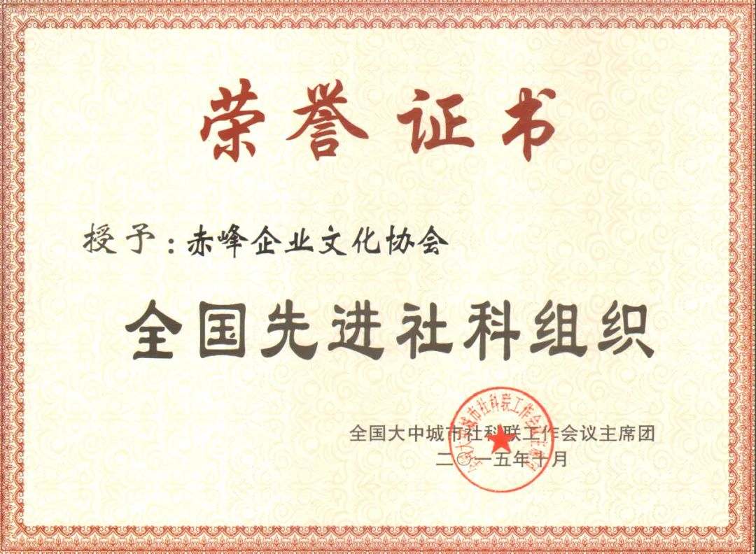 • 赤峰企業文化協會榮獲“全國社科組織先進單位”稱號